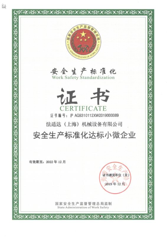 法適達(dá)公司安全標(biāo)準(zhǔn)化通過(guò)