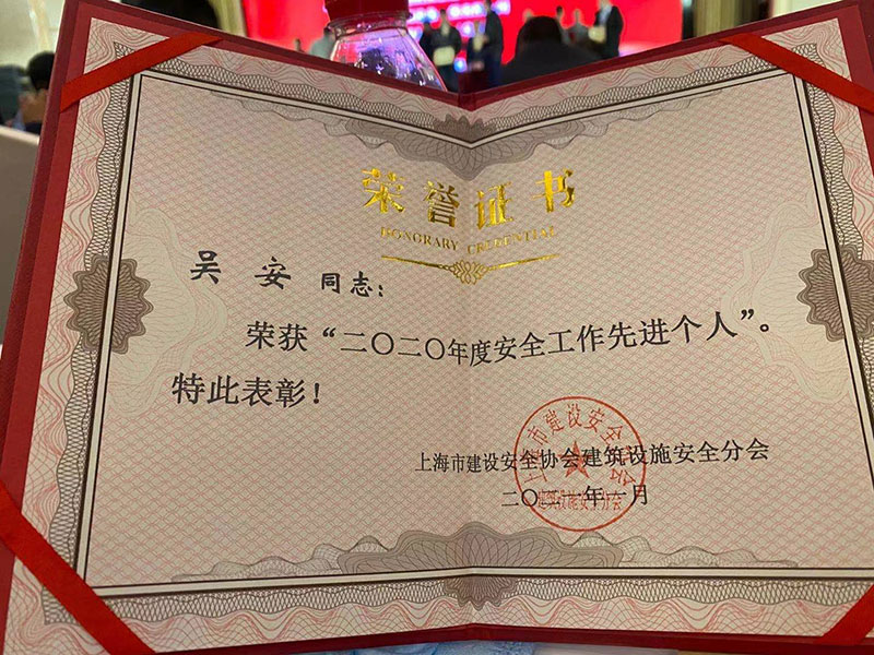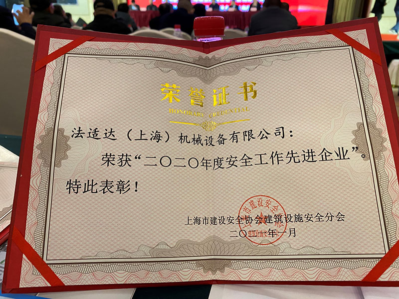 法適達公司榮獲上海市建設(shè)安全協(xié)會建筑設(shè)施安全分會頒發(fā)的安全工作先進企業(yè)以及個人先進。